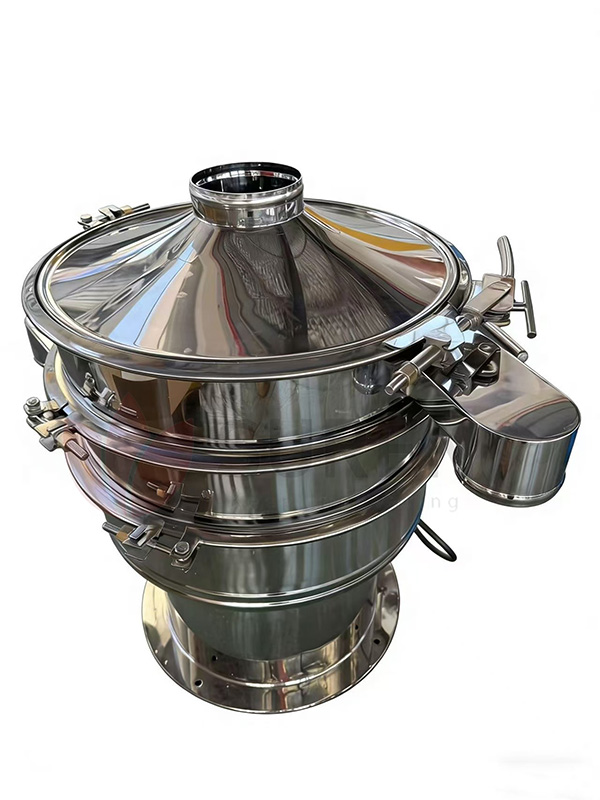 旋振筛又称为三次元振动筛分过滤机,是一种通用的振动筛分、过滤设备,在粉体、小颗粒以及液体物料都有着良好的应用。 该设备噪音低、效率高,快速换网需3-5分钟,全封闭结构,适用于粒、粉、粘液等物料的筛分过滤。 旋振筛具有物料运行的轨迹长,筛面利用率高等优点,调节上、下两端重锤的相位角,可改变物料在筛面上的运动轨迹;可以对物料进行精筛分、概率筛分等。